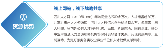 四川全盛人才针对企业的招聘服务,主要有以下三种基本形式:现场招聘、网络招聘及网站广告投放等。另有中高级人才猎头及人才培训等其它特色优质服务。我们的服务特色是人才信息量大、影响覆盖面广、招聘效果好、投入少回报多、人才匹配信息化。 竭诚欢迎广大企事业单位来我站招聘人才!公司自成立以来,始终坚持“以专业铸就品牌、以信誉服务社会”的经营理念,秉承“以人为本、服务至上”的宗旨,以“诚信务实”的作风和“开拓创新”的精神,积极为各类机构和人才提供以劳务派遣、人力资源外包、人事代理、培训咨询、招聘求职为主,涵盖人力资源各领域,全方位专业化的人力资源服务
